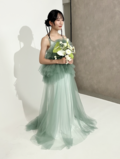 実例写真!パーティードレス グリーン キャミソール ツーピース チュールスカート ロング 前撮り