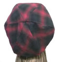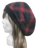 ゆったりルーズ・リブ付ベレー帽◆格子柄ハーフリネン(ワッシャー加工)/レッド×ブラック ◇小顔効果・オールシーズン着用◇