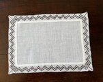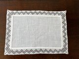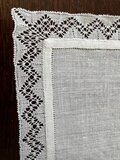 1900年代の長方形の麻のテーブルセンターの縁にぐるりと幅約2.5cmのボビンレースの縁レースをフラットに編み込んだテーブルセンターです。手仕事の熟練者の作品。