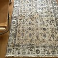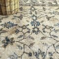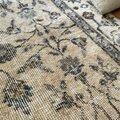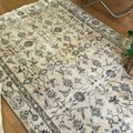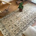 貴重106×203 ミルクティー草花ボタニカル柄 トルコヴィンテージラグ