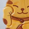 思わず笑みがこぼれる、愛らしい表情の招き猫。パズルのように木を組み合わせる「組み木」の技法で、一つひとつ丁寧に作り上げました。木の自然な色合いや木目を活かした、温かみのあるデザインが魅力です。