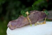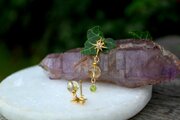 ゴールドのスターパーツのスタッズイヤリングに、6ミリのシトリンと4ミリのペリドットを組ませました。