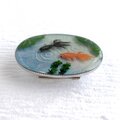 今回の赤い金魚は銀色と赤を使って金魚の鱗を描きました。(黒い金魚は銀色と焦げ茶色で描いています。)でも、描いた上から朱色を塗っているので鱗は見えません。自己満足ですが、少しずつ表現方法を探っています。生き物を描くのは本当に難しいと金魚を描く度に思います。