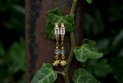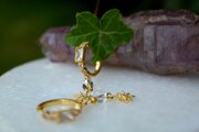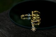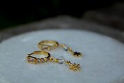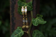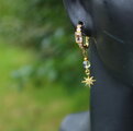 ラインストーンのゴージャスなスタッズイアリングのパーツに、4ミリの水晶と、ゴールドのスターのパーツを合わせました。