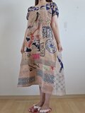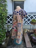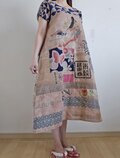 着物リメイク ハンドメイド 手ぬぐい 柿渋染め パッチワーク ワンピース
