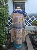柿渋染めた手ぬぐいをパッチワークしてワンピースを作りました。