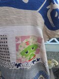 かすりのパッチワークが とっても丁寧で 美しく 色とりどりの生地も素敵にコラボ! 刺し子も 綺麗なラインで 美しい。 生地を 惜しげなく贅沢に使って 普通のパンツだと 2枚は 十分取れそう。 ワンピースにすれば とっても素敵になりそう。 プチプレゼントも 可愛い。