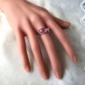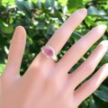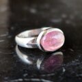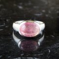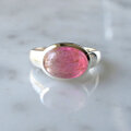 ネオンピンクのグラデーションが可愛い、バイカラースピネルのオーバルカボションリング。