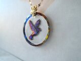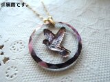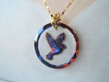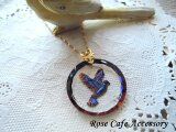 (1411)ヴィンテージグラスインタリオ✨バミューダブルー素敵な鳩のサークルペンダント/SV925 製バチカン/ハート型