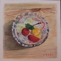 夏になると思い出します。基本的にを載せるかで、あん密やみつ豆の違いがあるようですね。美味しいだけではない、フルーツそれぞれの色味が響き合う様や、透明のガラスの器は夏には清涼感を感じさせる。私はやはり器は陶器よりも透明がいい。ガラスに映るフルーツの色はうっすらとして美しいし、光を反射するガラスのハレーション、床に落ちる影まで美味しさを演出している気がする。色んな素材で描いてみたいテーマです。