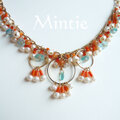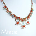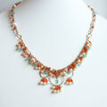 サンゴのオレンジと透明感あるアパタイトブルーの対比が個性的なネックレス。