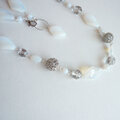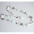 ホワイトオパール(模造石)とキラキラシルバーカラーで透明感のあるネックレスです。