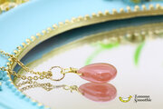 【再販・訳あり】艶やかつるん♪ インカローズ ペアシェイプ ブリオレットカット 14kgfネックレス