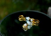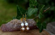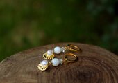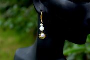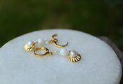 ゴールドのイアリングパーツに、6ミリのマザーオブパールと、貝にパールがあしらわれたゴールドのパーツを組ませました。