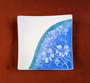 コスモスの青いスクエア皿【3輪の満開のコスモス】