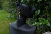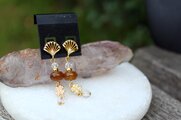 扇の形のスタッズパーツに、8ミリのインペリアルトパーズ、ゴールドのパーツ、さらに4ミリの水晶をあしらいました。