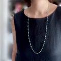 小粒 キューブカットターコイズ のコードロングネックレス(グラスコードに変更可)