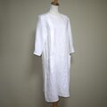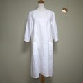 カラーリネン★クラシカルワンピ 七分袖◆オフホワイト◆S・M・L・LL(中厚、リネン100%)