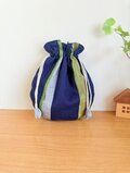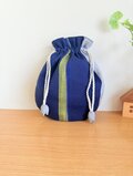 播州織のラウンド巾着袋(ネイビー×グリーン)