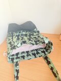 紐を絞って巾着風にしてもかわいい、絞らずそのままトートバッグ風に持ってもスッキリ。2WAYにおつかいいただけます。
