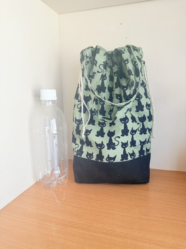 保温保冷シート付き巾着型エコバッグ(黒猫)