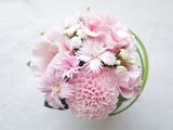 手毬のように、ころんと丸みのあるフォルム。様々な色合いのかわいいアレンジメントです。
