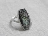 虹色を宿し植物彫刻が施された黒蝶貝(アバロンシェル)を