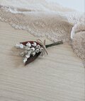 たっぷりのすずらんに、ベージュベルベットリボンを結び、小さめのコサージュに仕上げました。