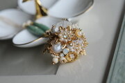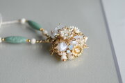 アンテイークカポションを中心に様々なアンテイークビーズを組み合わせて行きましたブローチ