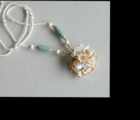 小さなシードビーズで葉っぱを作り、アンテイークビーズのパーツを散りばめて行きました。