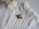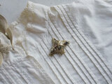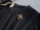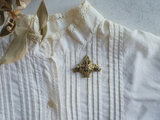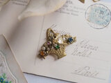 そこにガラスやパールが折り重なり、小ぶりですが立体的なボリュームのあるブローチとなっています。