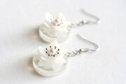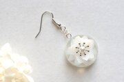 ラウンドのレジンの土台の上に蓮花を一輪咲かせた、人目を引くピアス。