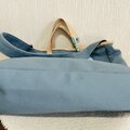 岡山倉敷製の11号帆布にヌメ革の持ち手といれくちをハンドステッチをいれました。