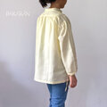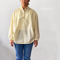 リネンコットン長袖シャツ サイドギャザー付き薄手ブラウス・レモンイエロー