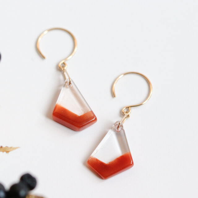 K10|天然石ピアス 一点もの|テラコッタオレンジのアンフィボールインクォーツ No.1