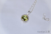 イブニングエメラルドといわれる明るめのオリーブグリーンが揺れるネックレスです。