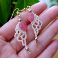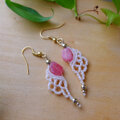 インカローズ(アルゼンチン産)天然石マクラメ編みピアス 天使の羽モチーフ 誕生日プレゼントギフト 3765