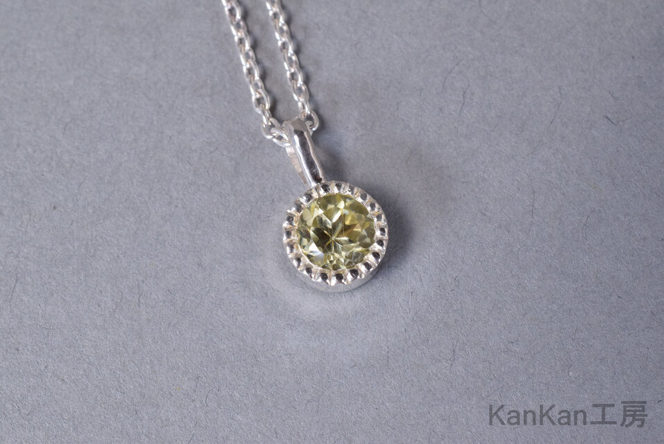 ミル留めを施したシンプルな一粒ネックレスに仕立てました。