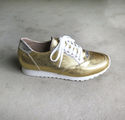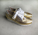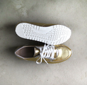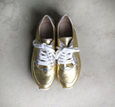 【アウトレット価格】23.5cmのみスリムなのにゆったりな履き心地!本革大人ユニセックススニーカー/ゴールド×シルバーのコピー
