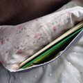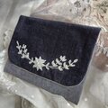 黒リネンにオフホワイトのリボン刺繍の通帳ケースです。