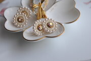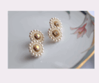 スワロフスキークリスタルを中心に配置下シンプルな刺繍ピアス。