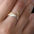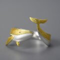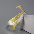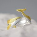 鯨をテーマにしたリングで、金色と銀色を用いて表現された魅力的なアクセサリーです。波の中を泳ぐようなデザインで、指に美しくフィットします。このリングは、海の不思議さと壮大さを思い出させてくれます。職人の手によって一つ一つ丁寧に作られており、ディテールにこだわった仕上がりが魅力です。普段使いにも特別な日の装いにもぴったりで、見るたびに心が和むアクセサリーです。