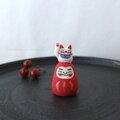 ちょこんとのった小さな招き猫。