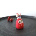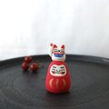 優しい表情の赤だるまさんの上に
