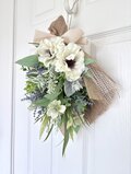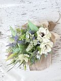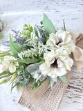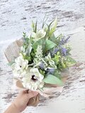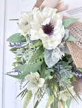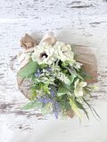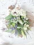 ユーカリなどのグリーンの中にラベンダーやアネモネを