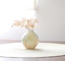 陶器らしいどこか素朴で落ち着いた雰囲気と、丸みを帯びた可愛らしさ、すっきりとした佇まいをお楽しみいただける花器を目指して制作しました。
