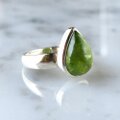 透き通るような爽やかグリーンが美しいペリドットのしずくカボションリング。