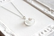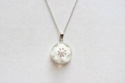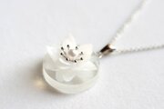 ラウンドのレジンの土台の上に蓮花を一輪咲かせた、人目を引くペンダント。