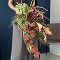 赤やオレンジ、ブラウンの色味の草花を集めたスワッグを作りました!