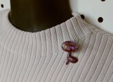プックリした真珠からヒラヒラとなびく虹色のヒレ。 とっても素敵です。 大きさも十分ですし、スワロフスキ-のアクセントも効いています。 黒い服に映えそうです。